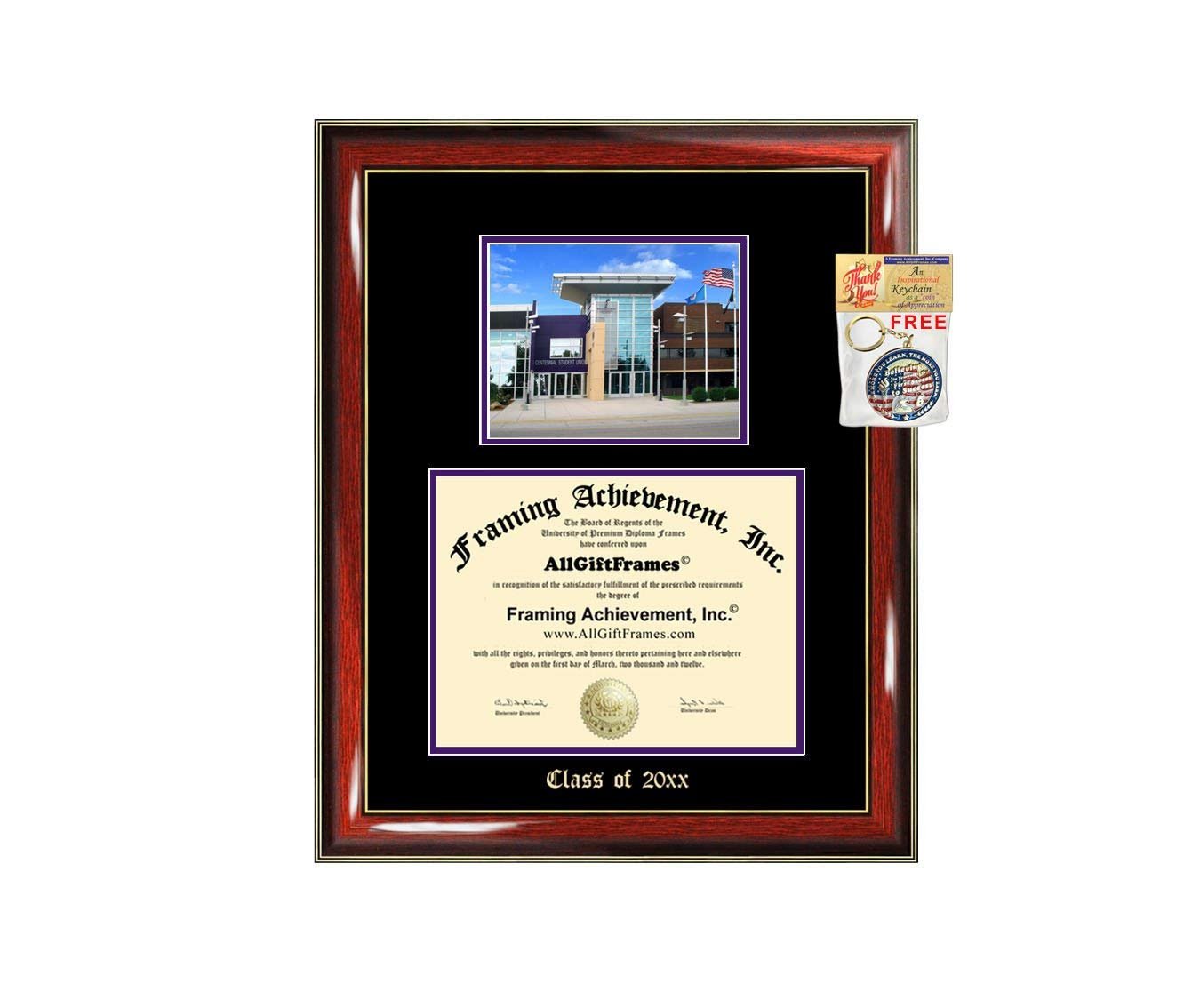 - Includes backboard, pH balance matboards help preserve and protect your diploma, glass and hanging hardware. Includes school college campus photo and shipped via Fedex if within 48 states excluding (HI, AK, APO) Ready to Hang!