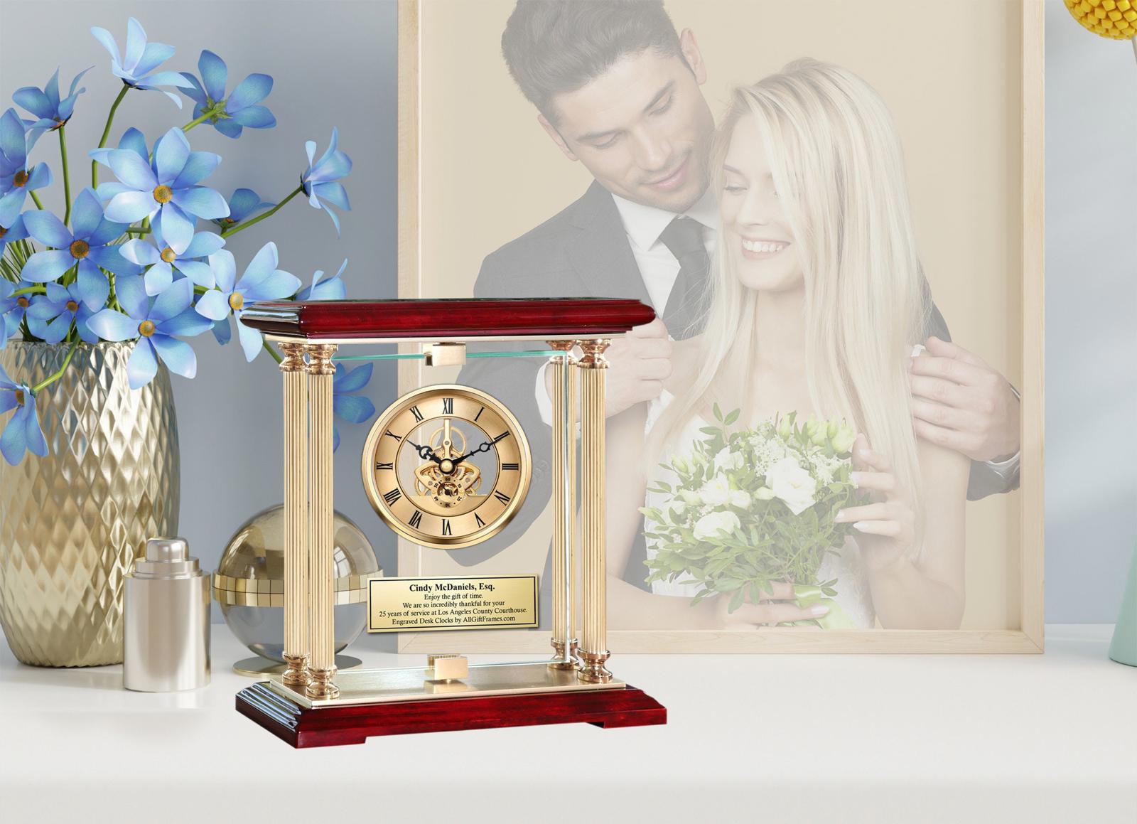 ♥ Premium laser engraved quartz movement clock embedded in manual swiveling 360 degree glass panel
