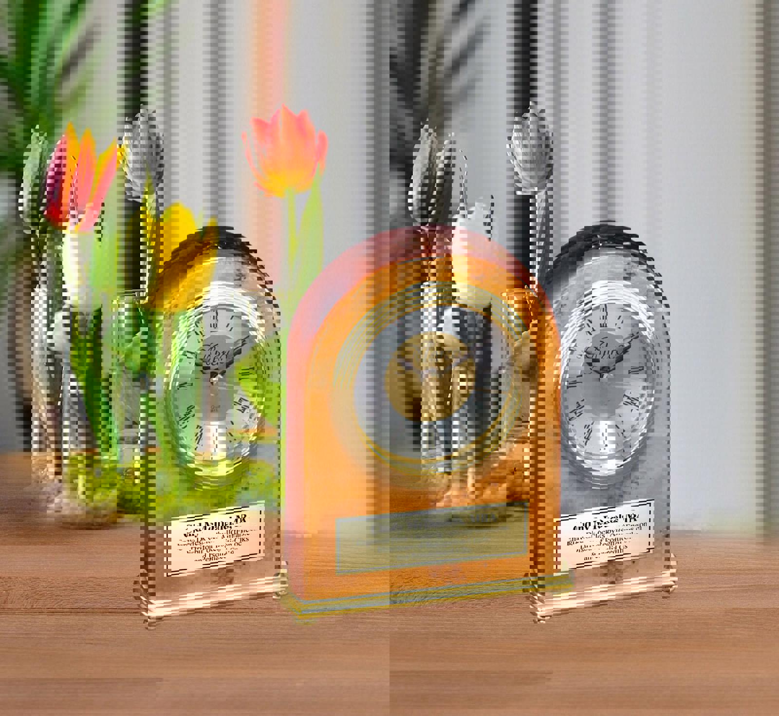 From executive boss business gift to employee service award clock, we have a variety of engraved corporate gifts. Table top wood engraved desk clock as graduation retirement house warming thank you business gifts for your coworker boss friend colleague mom dad. Custom gold plaque mounted in the front of the table mantel clock makes the gift elegant and special for any occasion. Customized gifts for retiree and employees. Special message engraving as corporate recognition awards and presents for him and her. Best business thank you gift. If you have any questions, email us through EngravedClocks