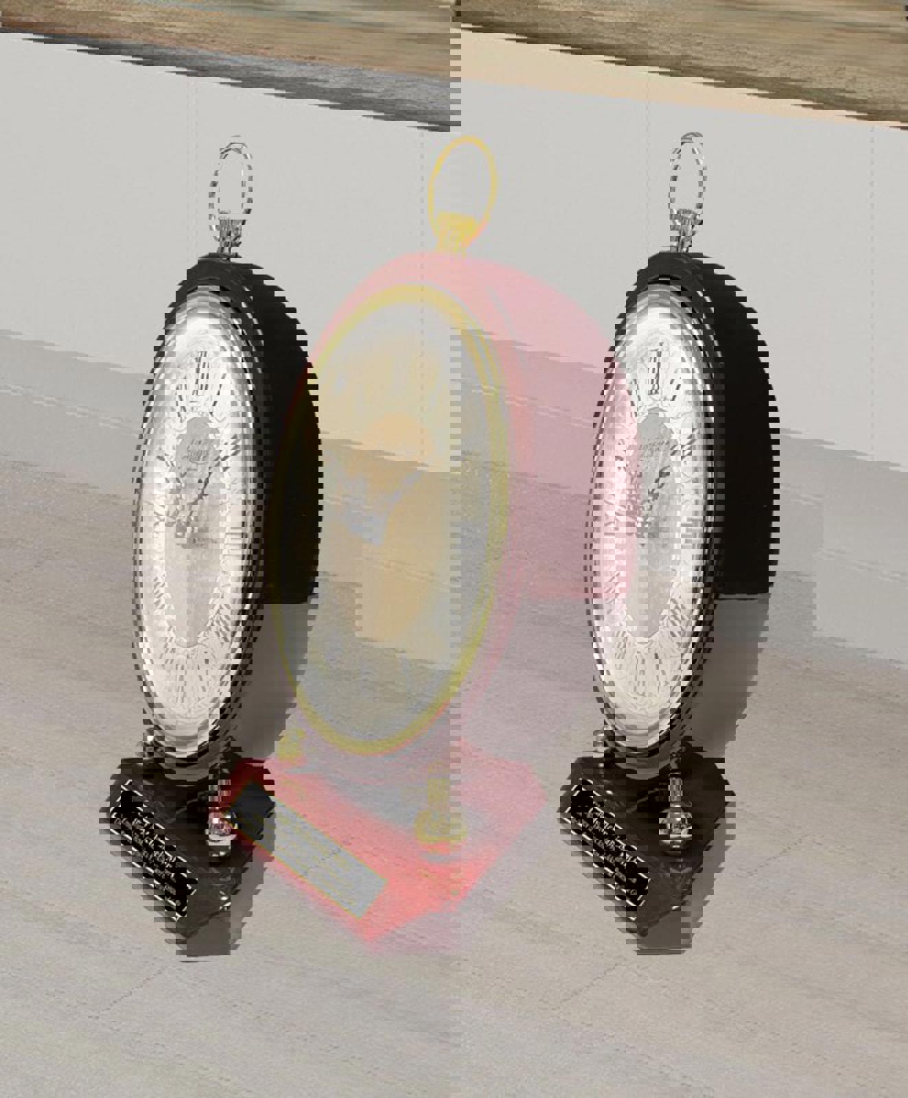 ♥ The large size luxurious mantel desk clock features round shape high-gloss cherry wood, dual gold brass metal ball footing decor and decorative floral design elements in the clock dial with personalized black engraving plate