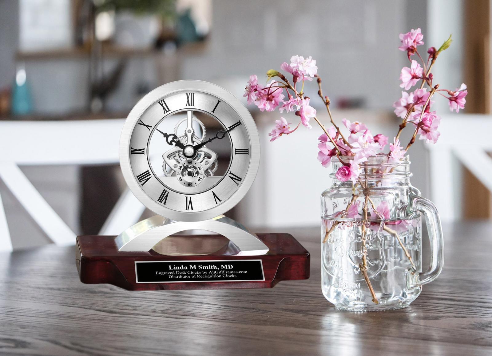 ♥ Personalized Table Desk Clock Award with Silver Da Vinci Moving Gear Dial as Unique Retirement Gift Wedding Anniversary Graduation Service Recognition Award Coworker Retiree Gift
