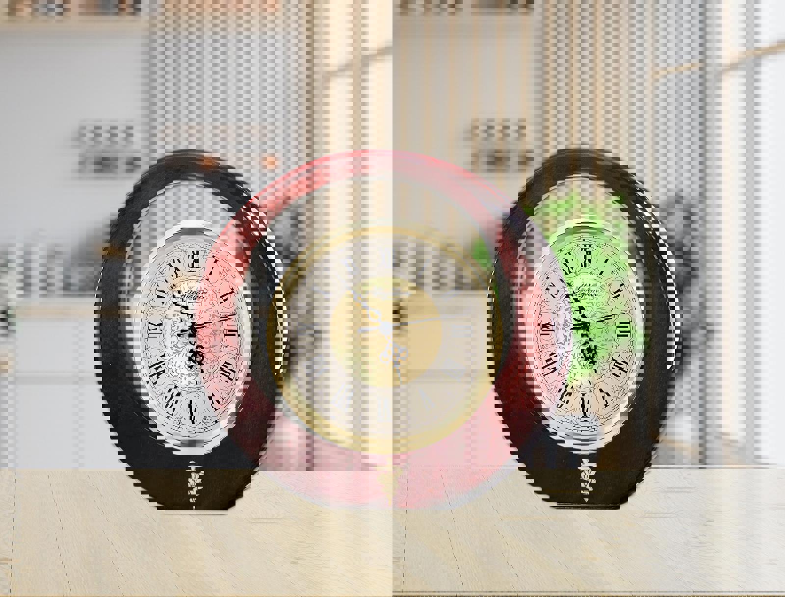 ♥ Beautiful table top mantel eclipse round shape cherry wood clock design