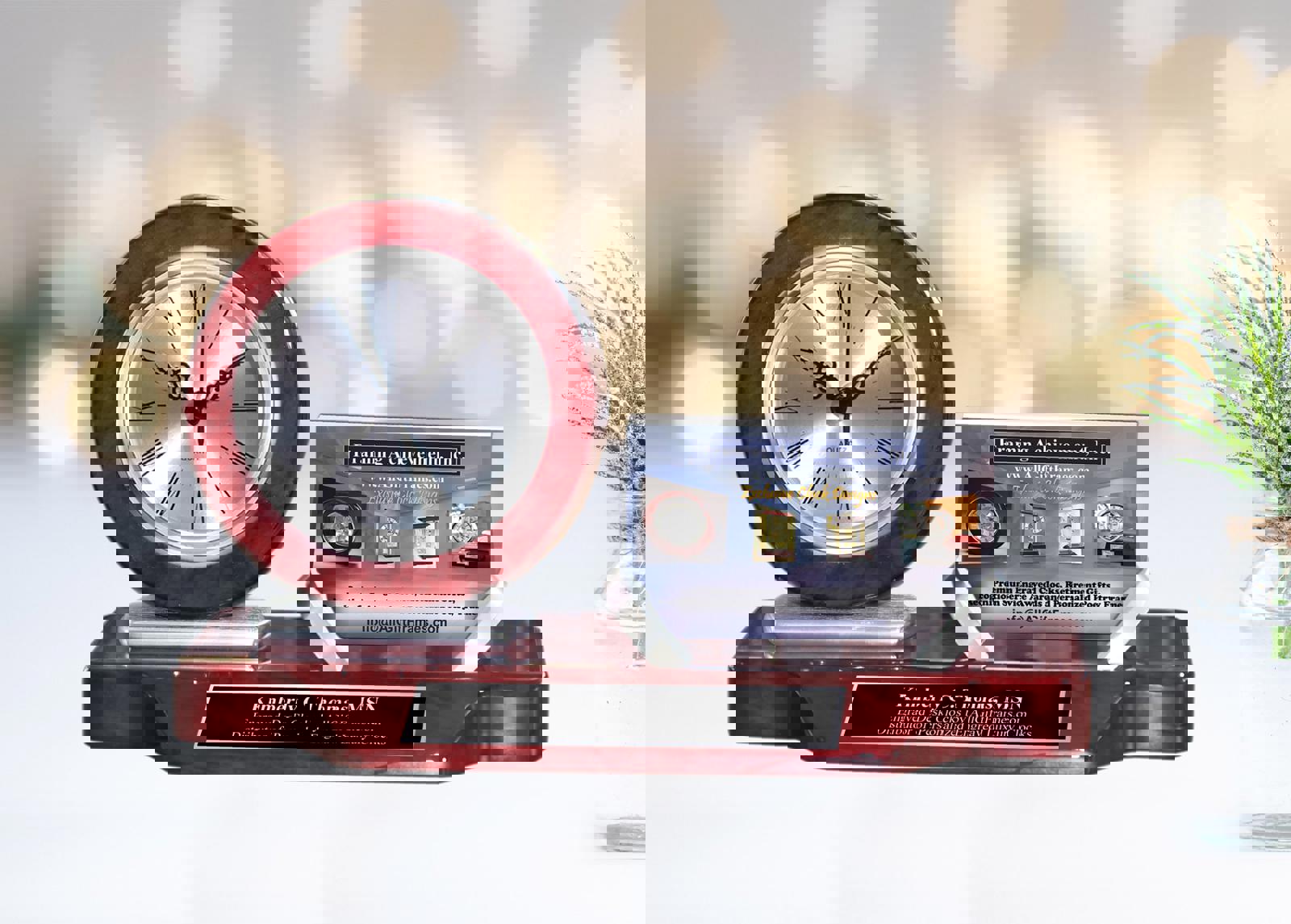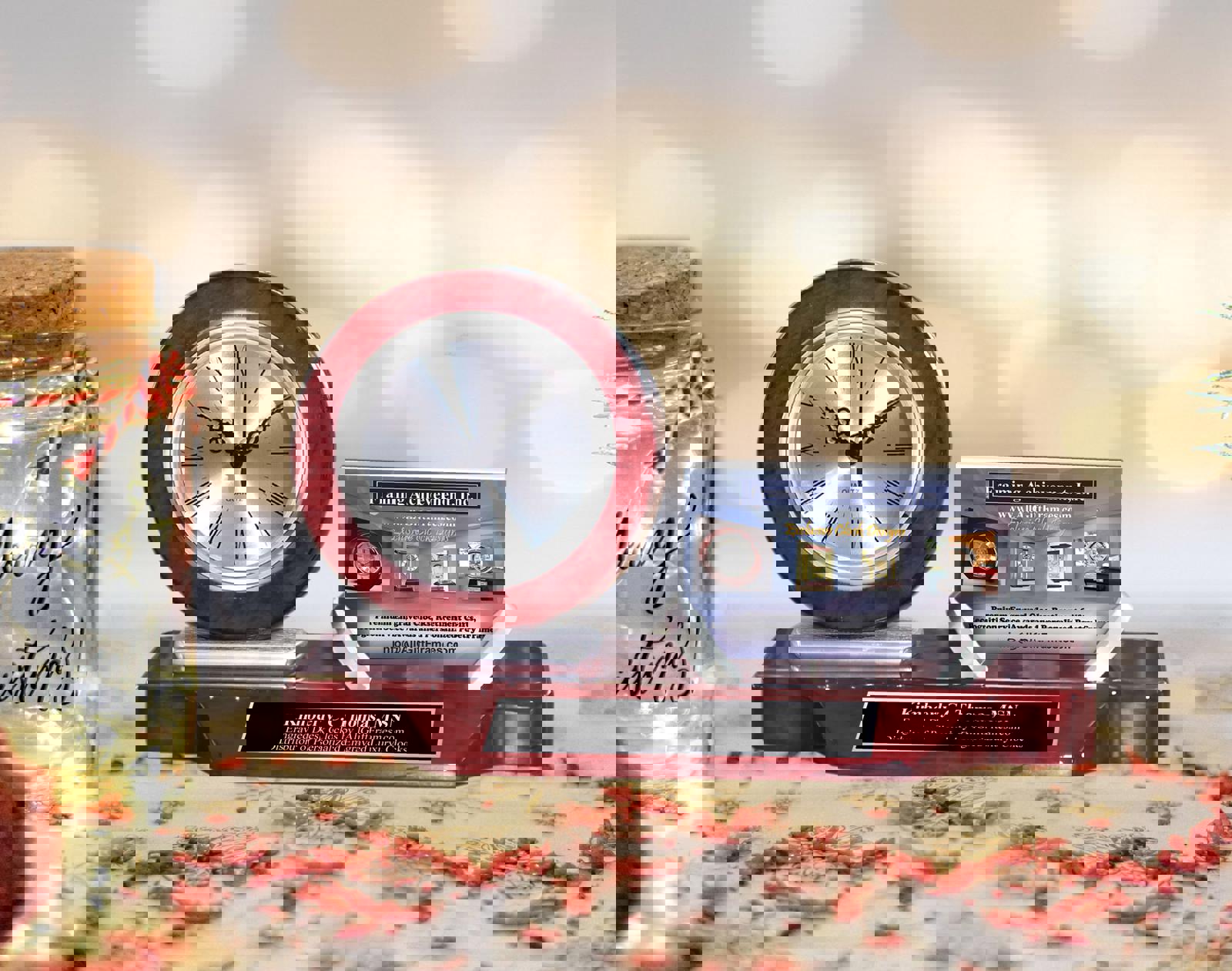 The luxurious name plate with clock truly succeeds as recognition or retirement gift with outstanding design as a retirement graduation company promotion employee service award birthday present. Let our custom name plate desk clock accessories corporate personalized etched clocks and personalized company employee promotion products imagination wander and explore the possibilities that you can create with AllGiftFrames recognition awards and trophies. Rating high on style and elegance, Framing Achievement's corporate engraved clocks and personalized glass appreciation presents are the first choice in premium employee appreciation service gifts. Custom Business Card Holder Engraved Executive Name Plate Display Combo Wood Desk Black Etched Silver Clock Personalized Gift Graduation Graduate Employee Promotion