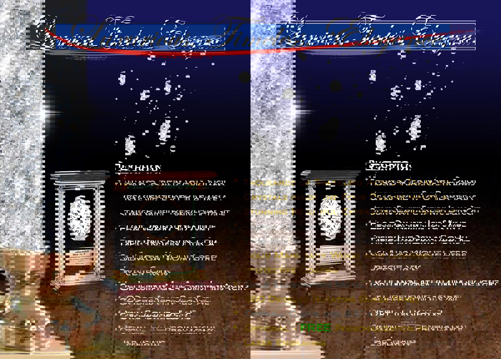 The transparent thousand of acrylic crystal clear diamond filled pillars clock casing holds a sophisticated white face timepiece suspended in glass. Gold clock bezel with designer minute and hour needle compliment the metal aluminum gold accents mounted on wooden base. A personalized engraved plate provides a contemporary design for any desk décor. Recognized your boyfriend, girlfriend, husband, wife, graduate, retiree recipient successes by engraving a special message on gold engraving plate. The glossy coating on the dark wooden base and metal gold accents with gold clock bezel are skillfully crafted into the breathtaking time display. A luxurious and impressive gift for any occasion such as retirement, graduation, birthday, service award, housewarming, new home, promotion and wedding anniversary. Desire Personalized Engraved Custom Personalized Gift Him Her Love Unique Diamond Desk Clock Executive Boss Retirement Service Award Employee Love Congratulations Engagement Graduation Valentines Day Thank You Appreciation New Home Housewarming Corporate Promotion Going Away Wedding Anniversary Birthday
