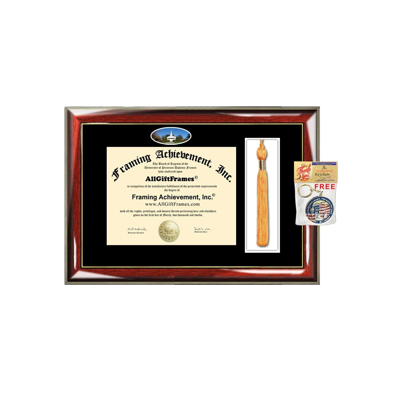 With our tassel diploma case holder Liberty University diploma frame with campus photo, the sentimental value are endless. Our variety of graduation degree plaques truly encourages you to create the perfect gift for treasured and priceless degrees and certificates. The certificate frame and college university frame includes a small campus photo image approximately 1.5H x 3W. If you have any questions email us through AchievementGifts (Amazon) or AllGiftFrames Includes Complimentary Inspirational Quotes Gold Keychain Gift by AllGiftFrames© These graduation diploma frames can display professional certifications and degrees with a campus image. We acknowledge and congratulate high school, college or trade school graduates by providing Liberty University diploma framing tassel box service to the alumni. Share the joy of giving and expressing congratulations to the graduate by framing a diploma in an elegant Liberty University tassel holder degree frame. These premier Liberty University diploma tassel holder boxed frames with campus image picture are unique graduation gifts. Manufacture of high quality premium personalized custom diploma frames and certificate plaques. Whether you're looking for elegant graduation diploma frame gift idea, personalized high school or college graduate gift, law school graduate gift or simply personalize graduation frames, we can help with the customizing gift. Let us be your custom Liberty diploma framing gift shop for a Bachelor, Masters, MBA, Doctorate, PhD, Juris Doctor or medical degree. All certificate college frames are custom made to fit your diploma sizes. Vast selection of college degree frames to fit a bachelor, masters, mba, doctorate, juris doctor, phd, nursing etc.. degrees at cheap prices.