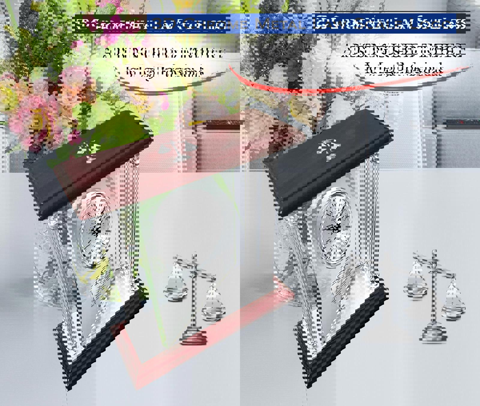 An 3d law scale emblem personalized clock for attorney, judge, lawyer, paralegal or legal professional that raises the bar in quality, functional and unique retirement, service award, thank you, passing state bar and law school graduation gift.