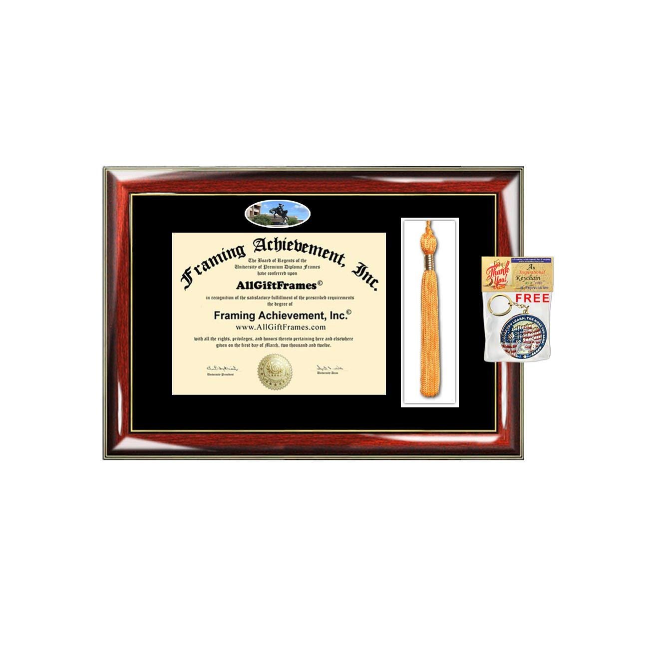 With our tassel diploma case holder University of Texas Permian Basin diploma frame with campus photo, the sentimental value are endless. Our variety of graduation degree plaques truly encourages you to create the perfect gift for treasured and priceless degrees and certificates. The certificate frame and college university frame includes a small campus photo image approximately 1.5H x 3W. If you have any questions email us through AchievementGifts (Amazon) or AllGiftFrames Includes Complimentary Inspirational Quotes Gold Keychain Gift by AllGiftFrames© These graduation diploma frames can display professional certifications and degrees with a campus image. We acknowledge and congratulate high school, college or trade school graduates by providing University of Texas Permian Basin diploma framing tassel box service to the alumni. Share the joy of giving and expressing congratulations to the graduate by framing a diploma in an elegant University of Texas Permian Basin tassel holder degree frame. These premier UTPB diploma tassel holder boxed frames with campus image picture are unique graduation gifts. Manufacture of high quality premium personalized custom diploma frames and certificate plaques. Whether you're looking for elegant graduation diploma frame gift idea, personalized high school or college graduate gift, law school graduate gift or simply personalize graduation frames, we can help with the customizing gift. Let us be your custom UTPB diploma framing gift shop for a Bachelor, Masters, MBA, Doctorate, PhD, Juris Doctor or medical degree. All certificate college frames are custom made to fit your diploma sizes. Vast selection of college degree frames to fit a bachelor, masters, mba, doctorate, juris doctor, phd, nursing etc.. degrees at cheap prices.
